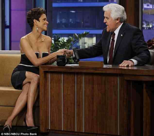 Jay Leno who is used to looking most of his guests in the eye when he interviews them on his late night talk show looked somewhat mesmerized by a beautifully dressed Halle Berry when she appeared on The Tonight Show on Monday evening.